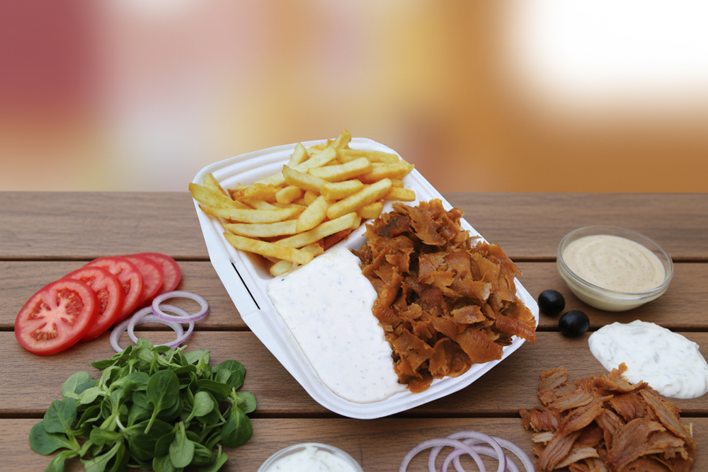 mit Drehfleisch, Pommes, Zaziki oder Salatsoße